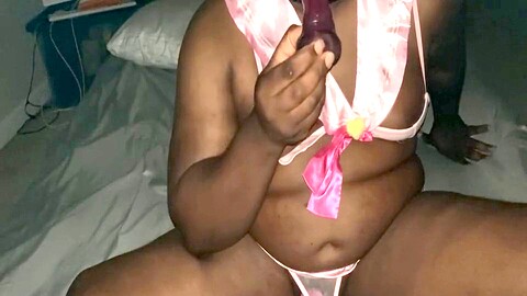 Solo she-male in maid uniform gets off with anal toys in garter and stockings