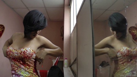 Asian ladyboy teen Deni with big fake tits gives a POV blowjob and takes it hard