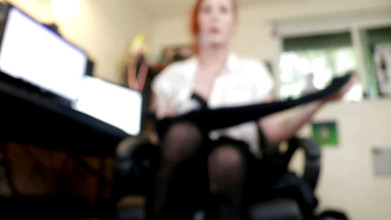 Une secrétaire du bureau exhibe ses collants, vidéo spéciale pour Jerry.